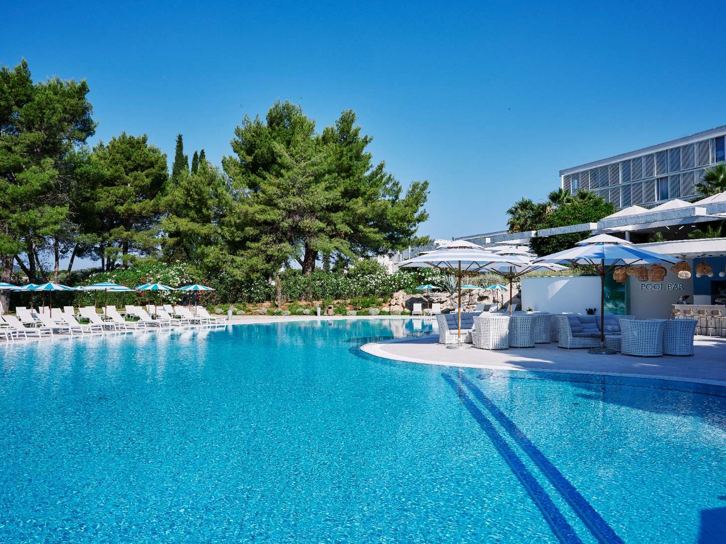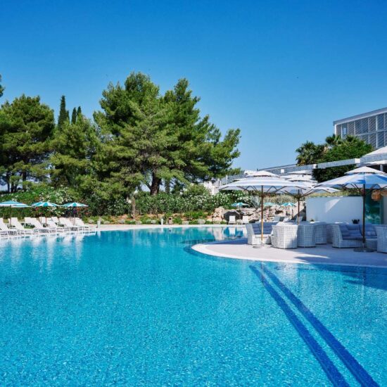 Uživajte sa svojim partnerom u našem unutarnjem i vanjskom salonu i terasi. Isprobajte fantastičnu gastronomsku ponudu jela i uživajte u piću u našem baru. Iskoristite sunce ležući pored bazena okruženog palmama i uživajte u pogledu na Jadransko more.